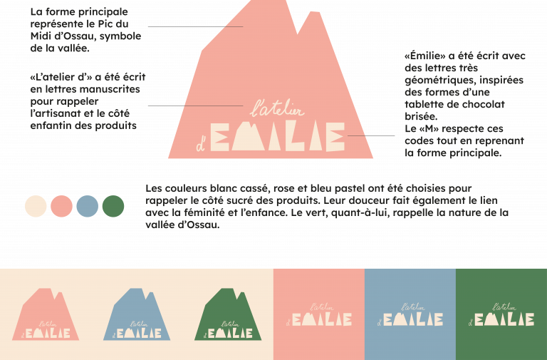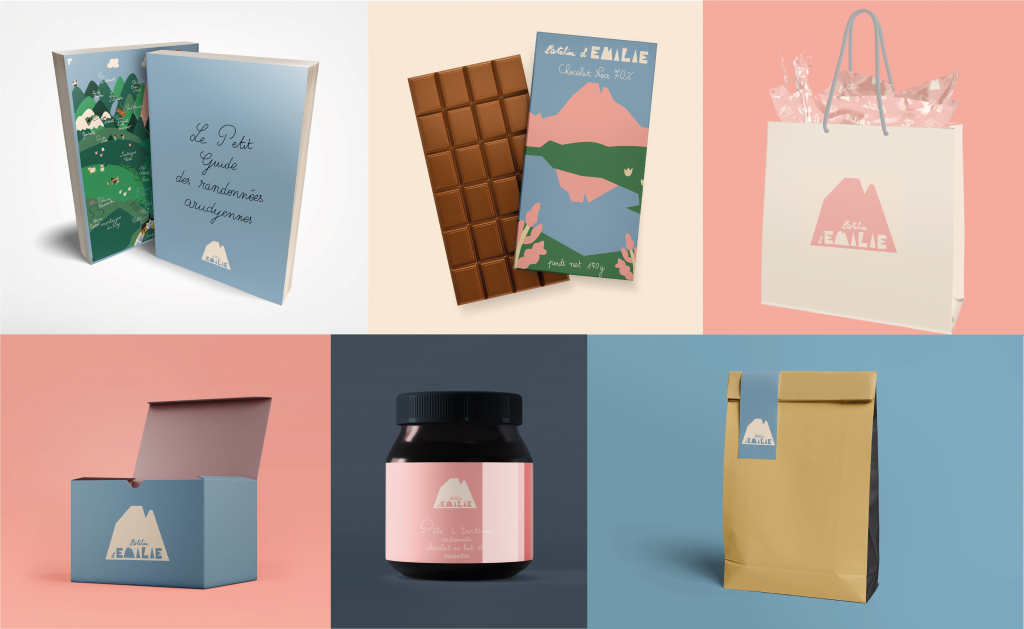 L’Atelier d’Emilie est une chocolaterie de la Vallée d’Ossau. Une proposition pour son univers visuel et ses packagings ont été réalisés.